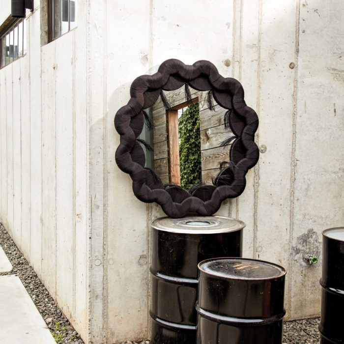 Mexico-based designer Laura Kirar’s first artisan furnishings collection includes the Mayan Baroque Mirror, which evokes the divine serpent where there is no beginning or end. The mirror is wrapped in hand-harvested, hand-dyed, and hand-spun lengua de vaca fiber from the Yucatan, a material that has been used in traditional craft since ancient times. maisongerard.com