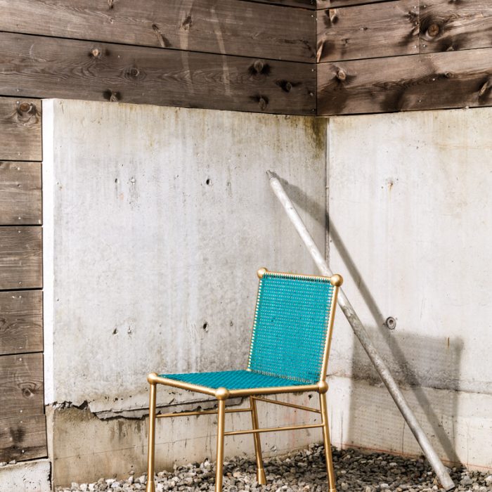 A modern take on the Egyptian royal throne, the BC Chair from Canadian Troy Smith is certainly substantial with a solid brass base that grounds the piece. Drawing from one of the oldest furniture-making techniques, the designer chose caning to complete the back and seat, which is dyed a very contemporary shade of turquoise. troysmithdesigns.com