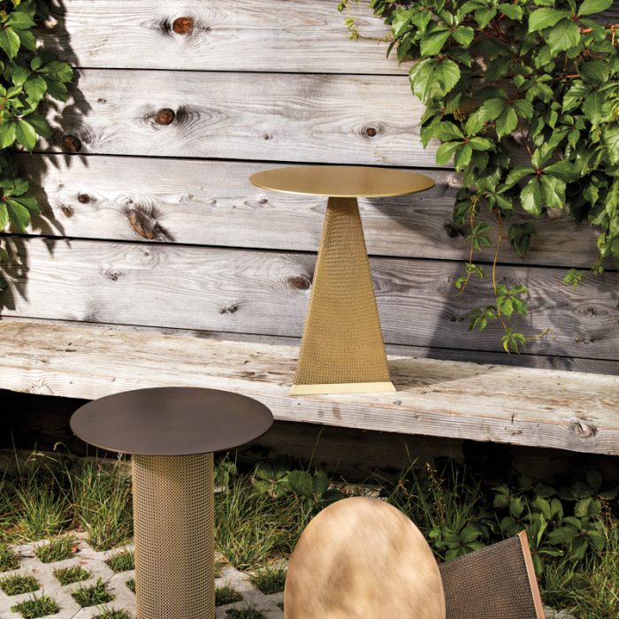 Centuries old and commonly used on medieval battlefields, woven chain mail is the focal point of the aptly named Armor Collection by Konekt. The intricately woven stainless steel is draped over the striking metal side table bases, offered in triangular or cylindrical versions. konektfurniture.com