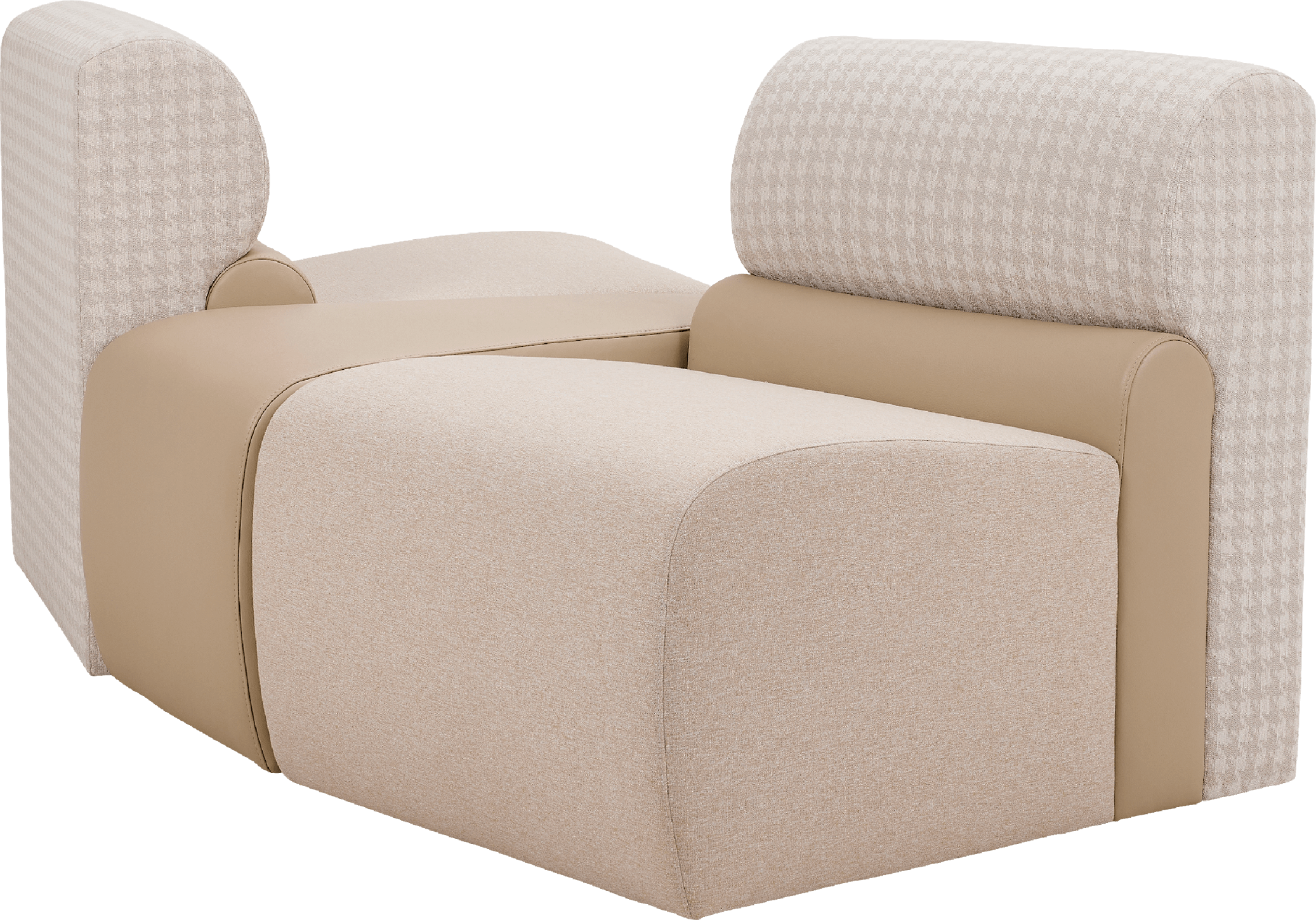 Organic shapes that mimic natural forms and create a calming environment. Also, furniture that combines different materials, such as wood, metal and upholstery.