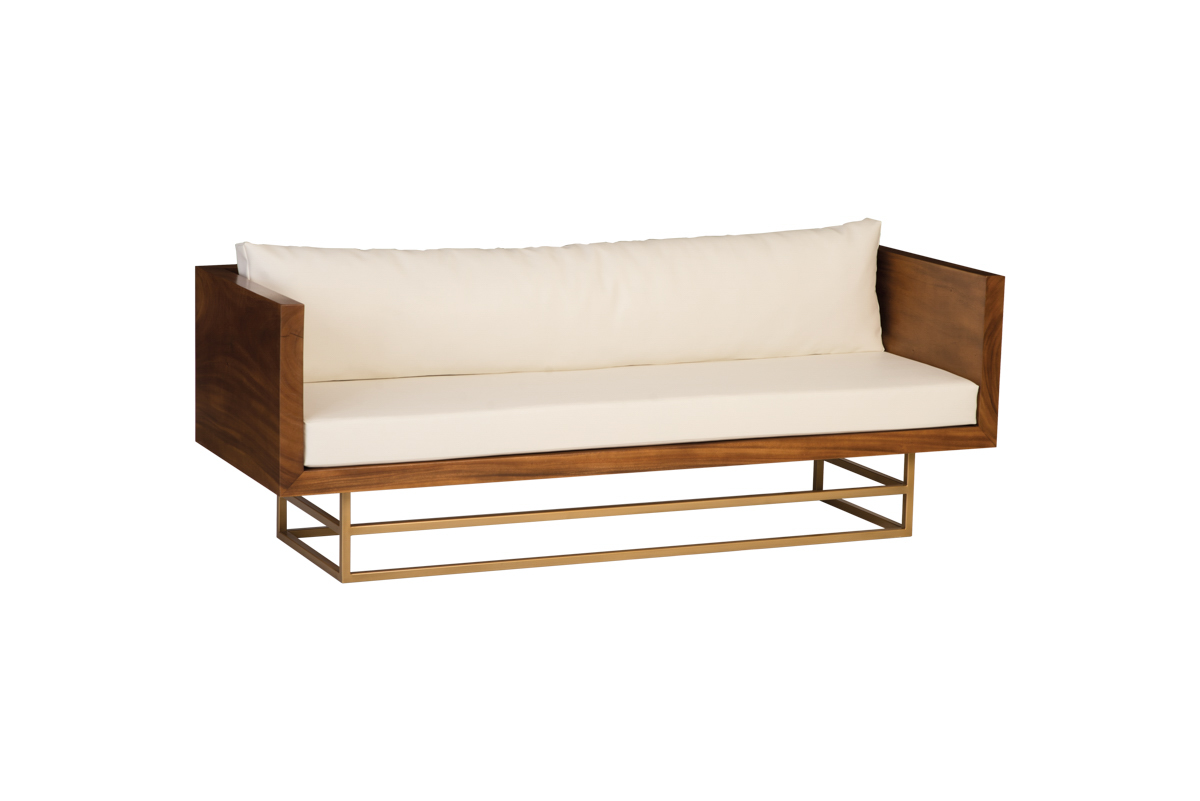 “My love of design comes from the notion that things are meant to be beautiful, and our intention to find and create such beauty comes through collaboration,” says Angela Harris, founder, CEO and principal of Denver-based design firm Trio. Harris recently partnered with Phillips Collection, a to-the-trade furniture manufacturer known for organic-contemporary furnishings, to create three collections that marry clean lines with artful details: The Ladder collection’s linear chairs, sofas (shown) and tables with metal ladder backs and bases play with negative space. Intersection’s boxy wood coffee tables are inlaid with crisscrossing metal bands. And the Bordo Collection’s channel-tufted-leather sofa and chair seats seem carved into sleek cubes of suar wood.