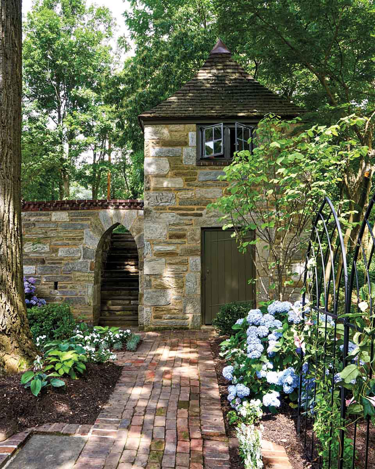 Today, BetzFred is home to a young family who saw a great place to raise children in its fairy-tale grounds rich with nooks and crannies and history. While outbuildings are on the rise, this grand specimen, modeled after the potting sheds of old English country homes, reminds that “structures are super important, interesting focal points to gardens,” says Wylonis. “This has been true for years and years and years.” kingshavenproperties.com