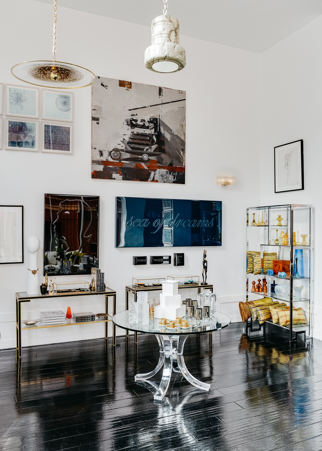 We carry mostly vintage modernist design from Austria, Germany, France, Belgium, the Czech Republic and Italy. You’ll find rare sculptures and lamps by French artist Philippe Cheverny, white-and-black modernist bisque vases from Germany, a chrome bar set designed by Gio Ponti, Augarten porcelain and Lobmeyr crystal, plus work by local artists including Lucky Rapp, Carrie Ann Plank, David Reposar and Gioi Tran. We also have our own private line of sofas, cashmere throws and pillows.