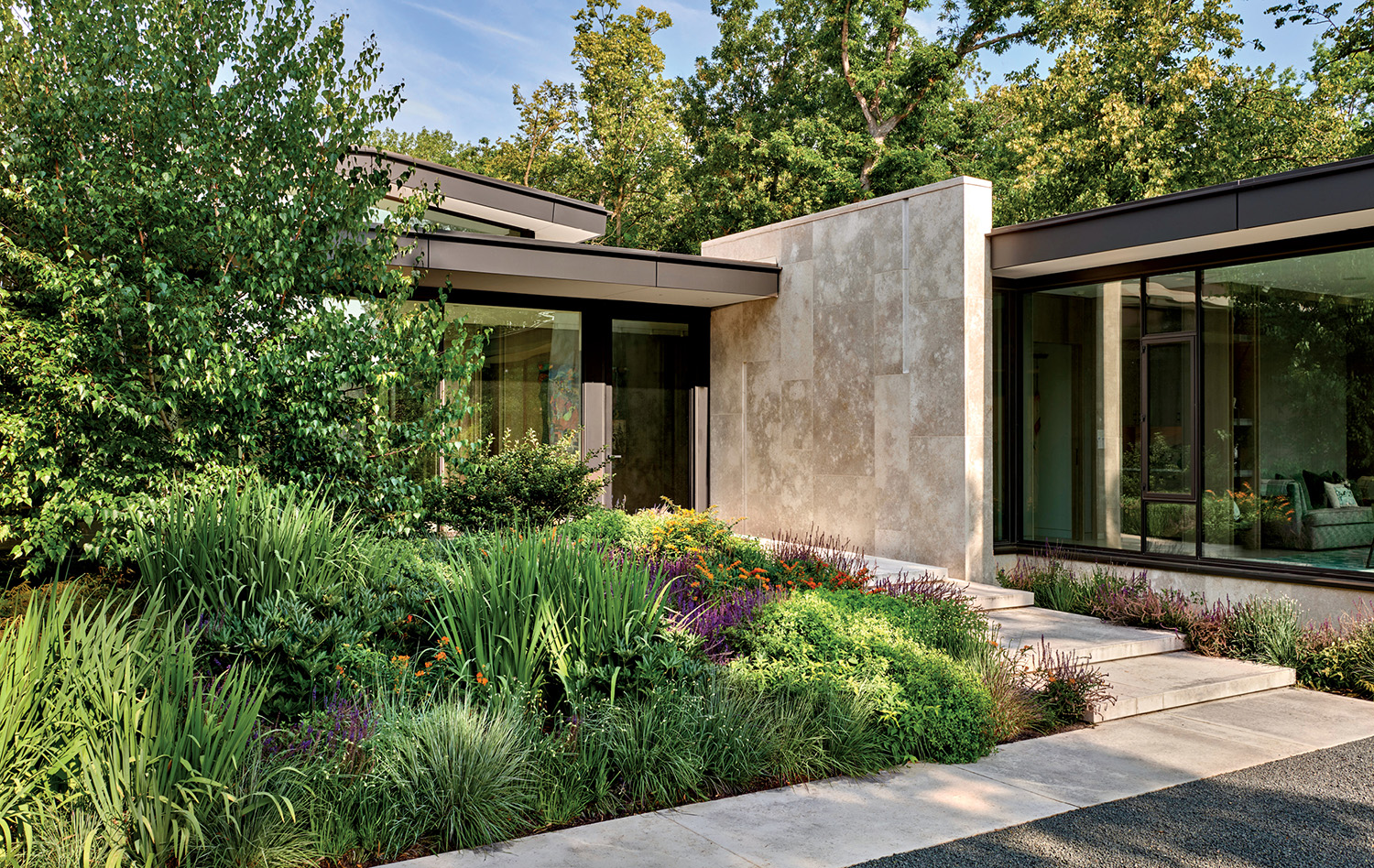 Perennials, including peonies, iris, salvia (all seen above in the Mariani Landscape-designed front gardens of a home by architect Celeste Robbins) and phlox as well as shrubs like yews, hydrangeas and boxwoods, which require minimal pruning. The new hydrangea varieties have thicker stems and smaller, more numerous flowers so they don’t flop in the rain. It’s a favorite of Chicagoans. In general, people are moving away from plants that are finicky.