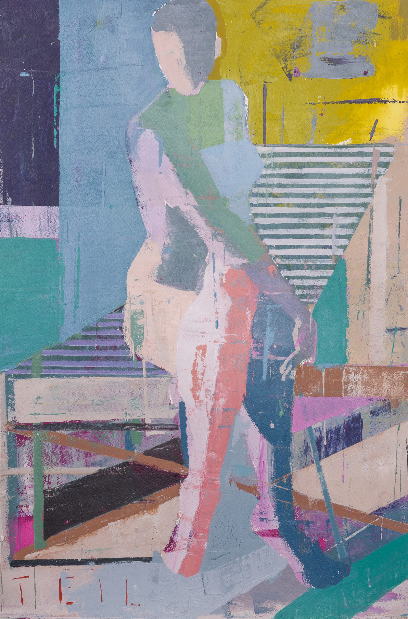 Let’s talk about inspiration for your new series. I looked to American painter Richard Diebenkorn as a reference point, taking the shadow lines of the chair the figures are sitting on and abstracting them in the background. The push and pull of their curvy silhouettes with the harder lines was interesting to me. In decorating my own home, I keep in mind what I want to look at every day, so my palettes have become more muted as a result–but still with surprising pops of color.